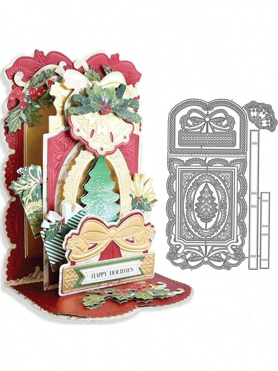 1 PC 3D Christmas Tree Folded Greeting Card Silver Gray Metal Die Cutting Die For Scrapbooking Decoration, DIY Scrapbooking Paper Crafts, Embossing Crafts, Crafts And Card Making, Greeting Card Making Metal Die Cutting Die