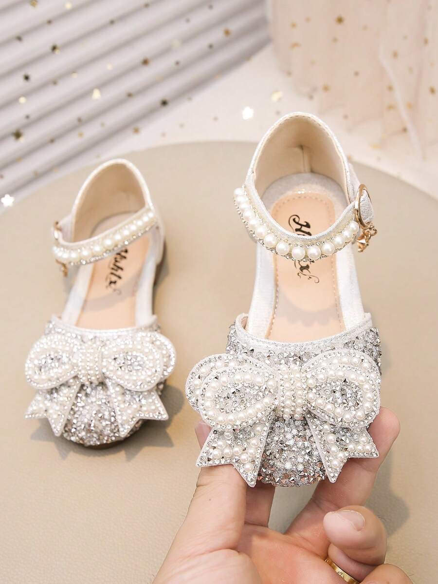 1 Pair Fashion Princess Shoes For Girls, Summer New Design With Bow Buckle, Closed Toe And Rhinestone Decor, Suitable For Outdoor Activities, Parties And Various Occasions