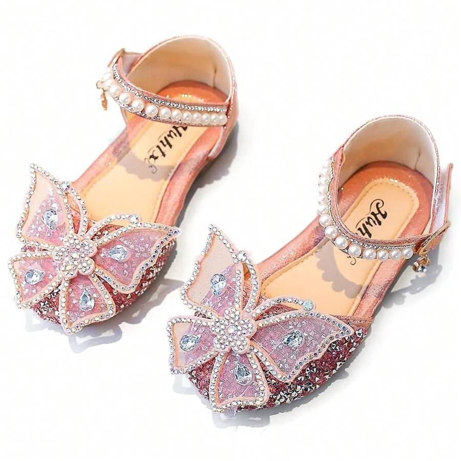 1 Pair Fashion Princess Shoes For Toddler Girls - Soft Bottom Sandals With Rhinestone And Bow, Baby Shoes With Rhinestone, Girls Dance Ballet Slippers With Sequin
