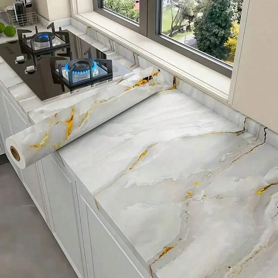 1 Roll Of Marble Grain Glossy Contact Wallpaper, White Gilt Texture, Wall Decoration Wall Stickers, Art Walls, Cabinets, Bookcases, Dining Tables, Wardrobes, Home Decor, Room Decor,Behang,House Decor,Papier Peint