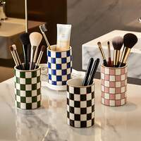 Black And White Checkered Ceramic Toothbrush Holder, Modern Toothbrush Box, Suitable For Bathroom Countertop Storage Rack, Black And White Checkered High-Quality Ceramic Tableware Rack, Desktop Pen Holder, Tableware Storage Box, Multi-Function Storage Canister, Desktop Organizer, Suitable For Kitchen, Bedroom, Vanity, Bathroom, Living Room, Office, Classroom, Dorm #1 Bestseller