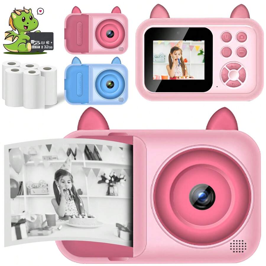 1Pc Kids Camera Instant Print, 1080P Video Redording,Dual-Lens Selfie,Toddler Digital Camera 32GB Card,Gifts For Girls Boys Age 6 7 8 9 10 11 12, Children Toys For 6-12.