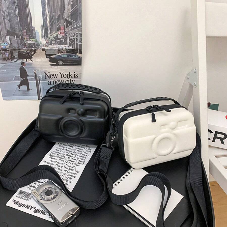 1pc Camera Graphic Black & White PU Material Zipper Closure Korean Style Personalized Men's Shoulder Messenger Bag, Large Capacity Hard Shell Small Square Multifunctional Handbag Festival Valentine'S Day