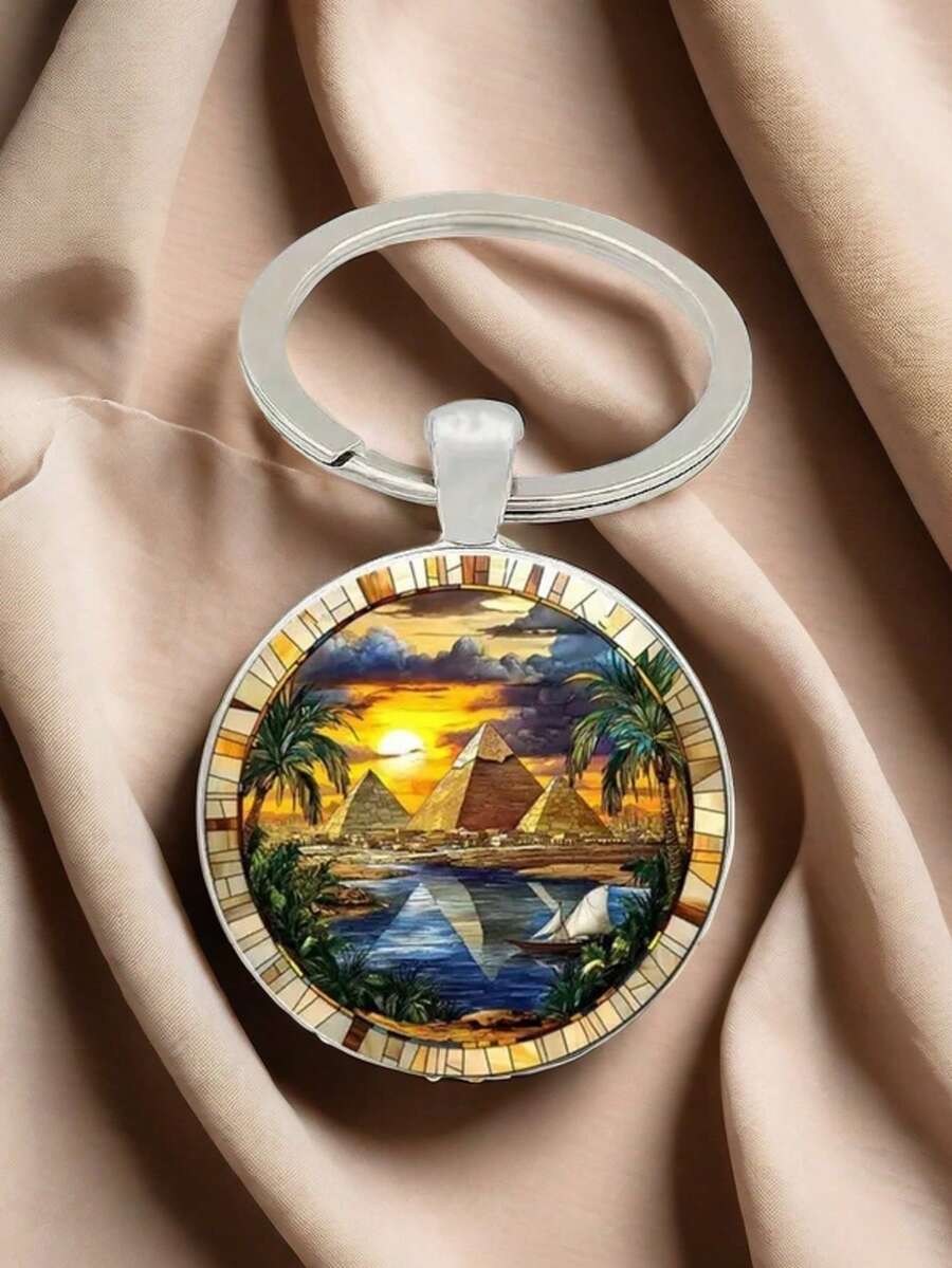 1pc Egyptian Pyramid Sunset Pattern Keychain, Bag Charm, Car Pendant, Home Decor, Anniversary, Holiday Gift, Halloween, Christmas, Thanksgiving Gift For Friends And Family Bag Lanyards With Id Holder Car Accessories Bag Charms