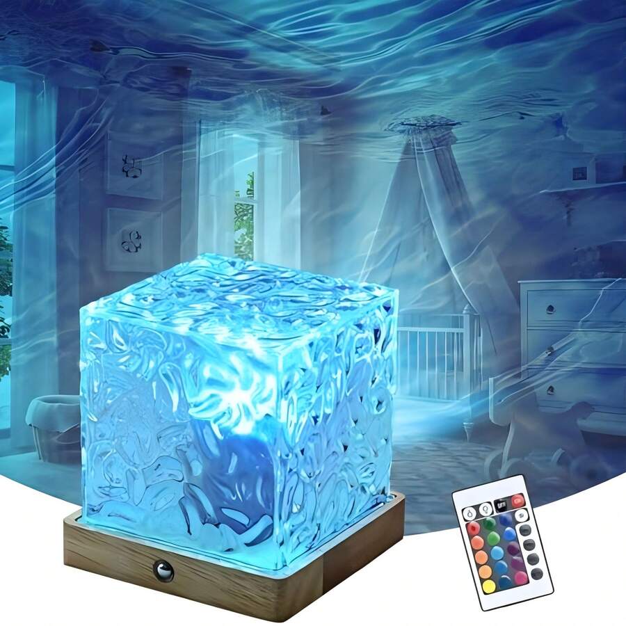 1pc LED Lamp With Touch Control USB Aurora Projector, Remote Control Wave Ceiling Projector, 16 Color Wave Night Light For Room Decor, Modern Style Plastic Material, Remote Control, Dimmable Lighting, USB Powered, Suitable For Bedroom, Living Room, Office, Kitchen, Bathroom, Desk Lamp, Bedroom Night Light