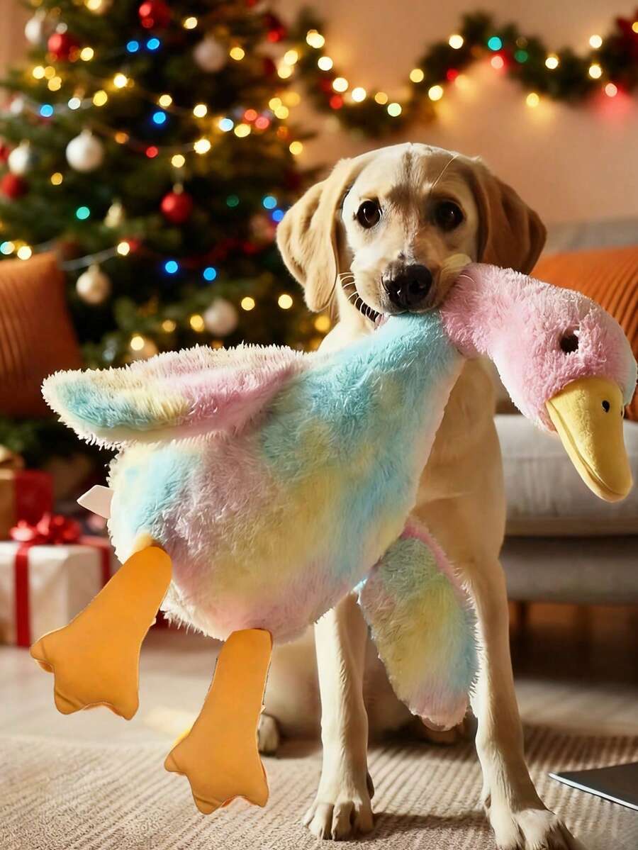 1pc Pack Soft Duck: Colorful Tie Dye Cat And Dog Plush Toys, Upgraded Version (Embroidered Eyes+No Zipper Design), Companion Dog, Washable Giant Cat And Dog Duck Toys, Soft Plush Toys, Dog Companion Toys, Pet Holiday Gifts, Halloween, Christmas!