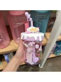 MINISO PopVibe Global1 Set Striped/Plain Glass Cup (With Straw, Lid And Handle), Can Hold Water, Coffee, Tea, Milk, Lemonade, Mixed Tea Drinks, Soft Drinks, Juice. Convenient To Carry And Easy To Clean, Suitable For Home, Office, School, Beach, Party, Outdoor Leisure. Large Capacity For All Seasons, Ideal Gift For Friends And Family On Birthday/Holiday/Anniversary; Water Bottle, Cup, Straw Cup, Mother's Day Gift