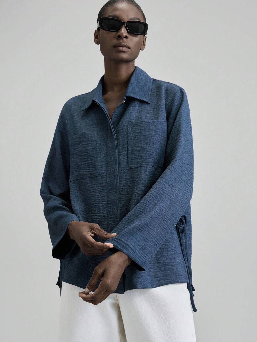 Ontre 2025 New Women's Clothing, Autumn/Winter Apparel, All Season Wear, Winter Outfits, Back To School Looks For Women, Halloween & Christmas Outfits, Women's Teacher Attire, Casual Outings, Night Out Dresses, Wedding Guest Formal Wear, Elegant Wedding Guest Dresses, Church Attire For Women, Business Casual, Women's Business Casual Wear, Versatile Basics, Blouses, Chest Pocket Long Sleeve Shirt Collar Jacket, Women's Shirts,Fall Tops