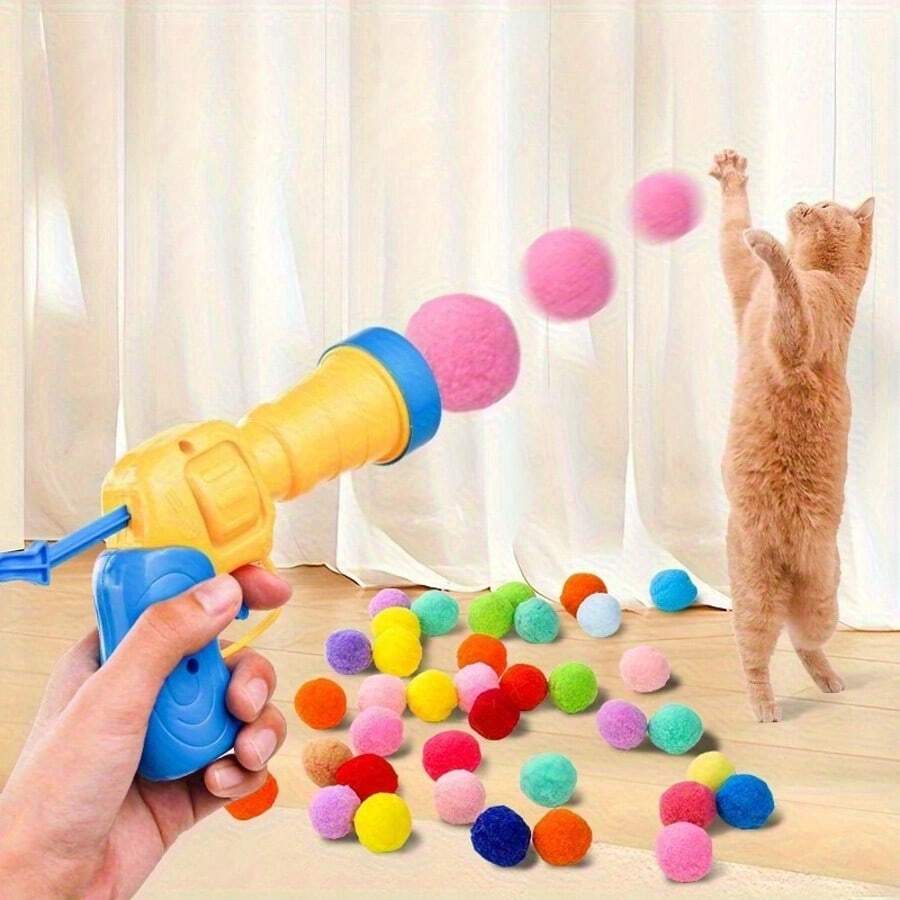 20pcs Silent Elastic Balls Plush Ball Launcher, Interactive Cat Toy, Automatic Ejection Pet Toy, Bite-Resistant Plush Ball Pet Training Toy, Cat Supplies, Dog Accessories