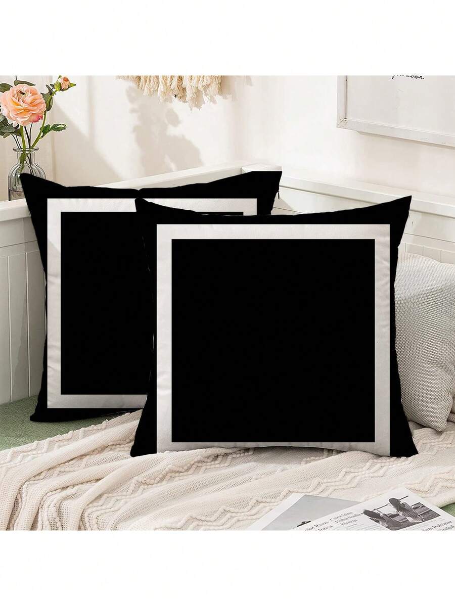 2pcs Nordic Black & White Geometric Pattern Pillow Covers - Double-Sided Velvet, Zipper Closure, Machine Washable, 45x45cm, Suitable For Living Room, Sofa, Headboard, Car Etc., Minimalist Decorative Pillows, Velvet Texture