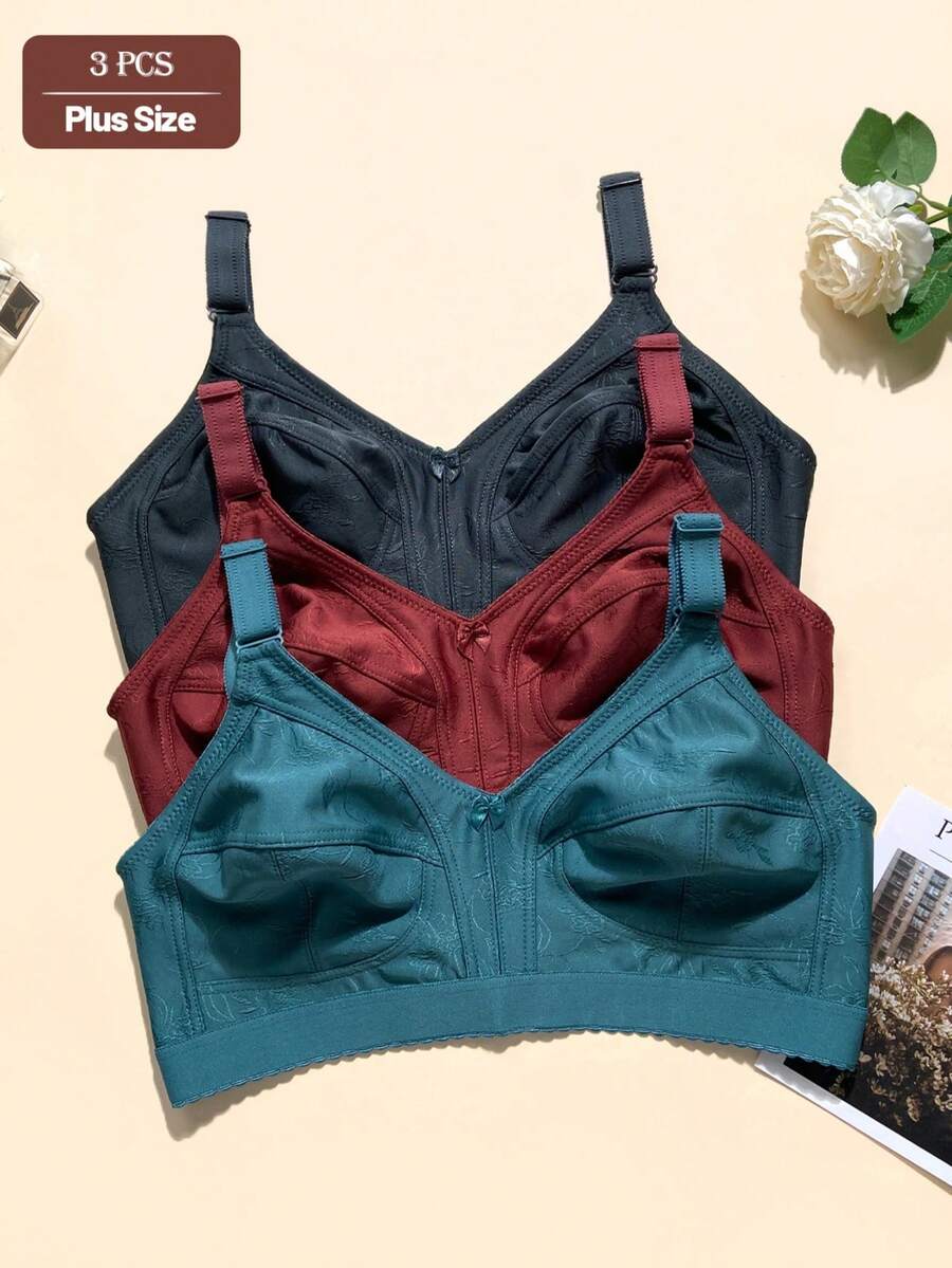 3pcs Floral Print Casual - Comfortable Minimalist Casual - Athletic Casual - Regular Casual Knit Fabric Banded Plus Size Bras For Women