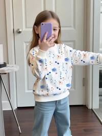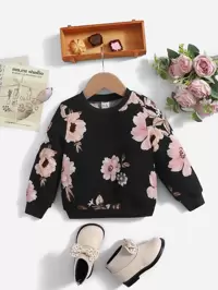 DazySHEIN Baby Girl Cream Pink, Cute Elegant Minimalist Autumn Daisy Illustration Pattern, Soft Crew Neck Pullover Thick Long Sleeve Sweatshirt Suitable For Autumn/Winter, Autumn For, Easy Comfort, Autumn Layers, Stylish, Casual Wear, Graphic, Fall, Fall Vibes, Fall Season