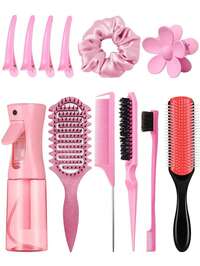 A Set Of Long-Handled Pink Women's Combs With Multi-Color Hollowed-Out Ribbed Design, Made Of Abs Plastic, 9.06*2.76 Inches, Anti-Static, Dry And Wet Combing Tools, Pink Accessories, Hair Combs, Massage Combs, Air Cushion Combs, Home Life, Dormitory Body Care Tools, Christmas, Thanksgiving. #1 Bestseller