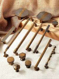 Vintage Bronze Cabinet Door Handles, Antique Distressed Drawer Pulls, Minimalist French Luxury Cabinet Door, Wardrobe, Kitchen Handles, Furniture Door Knobs And Pulls, Suitable For Vanity, Nightstand, Wardrobe And Cabinet, Luxurious Bedroom Furniture Decor Material, Electroplated Surface, Durable And Fade-Resistant, (Hole Spacing Options: Single Hole, 96mm, 128mm, 192mm, 320mm), Comes With Installation Screws