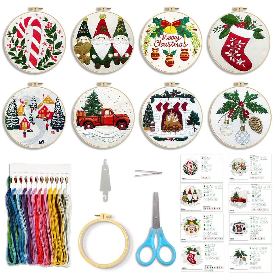 Christmas Embroidery DIY Kit [Bells/Red Truck/Christmas Tree], Includes Embroidery Frame, Needle, Thread, Printed Fabric, Beginner Cross Stitch Set, Christmas Decor Handmade Gift, Limited Time Offer