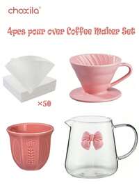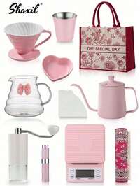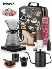 choxilachoxila 6/8/10/13/15pcs Manual Coffee Maker Set, Includes Gift Box, Suitable For Party And Holiday Gifts, Portable Coffee Gift Set, Travel Coffee Accessories, Containing Coffee Pot, Thermometer, Glass Carafe With Filter, Coconut Pattern Coffee Cups, Coffee Filters And Filter Holder, Manual Coffee Grinder, Coffee Scale, Coffee Spoon, Coffee Canister, Spray Bottle, Coffee Bean Tray, Coffee Mat, Coffee Stickers, Essential For Back To School Season