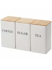 shoxil storeshoxil 3PCS/Set Square Coffee Storage Can, Coffee Bean Canister, Tea Canister, Sugar Canister, Bamboo Lid & Iron Body Container, For Coffee Beans, Tea Leaves, Snacks, Home Kitchens, Coffee Shops, Pantry Organization, Gift Giving