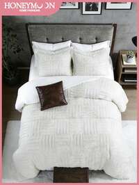 3pcs Luxury Bedding Set, Girls Bedroom Thick Plush Comforter, Embossed Milky White Flannel Quilt, Bubble Gauze Duvet Insert, Super Warm Thick Comforter Set With 2 Pillow Shams, Suitable For Autumn/Winter