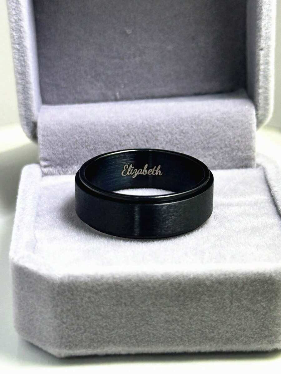 Custom Handwriting Letter NAME Spinner Stainless Steel Ring With Luxury Velvet Box For Couple Men And Women