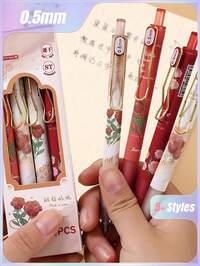 6pcs/Set, Mobile Rose Pattern Gel Pens, Floral Series Soft Grip Black Pens, Black Ink Pressure Sensitive Pens, Smooth 0.5mm Retractable Black Ink Pens, Cute Back To School Gel Pens, Ballpoint Pens, Writing Stationery Gel Pens, Suitable For Teenagers, Adults, Home, Classroom And Office #9 Bestseller