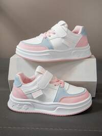 1 Pair Back To School Casual & Fashionable Children's Skate Shoes, Made Of PU Leather With Multi-Color Patchwork Upper, Mainly White With Purple & Light Green Accents, Simple & Fresh Design, Soft, Lightweight, Comfortable, Convenient Hook And Loop Closure, Suitable For Children's Daily Sports, Leisure, Play, And Holiday Occasions, Combining Aesthetics And Practicality. #1 Bestseller