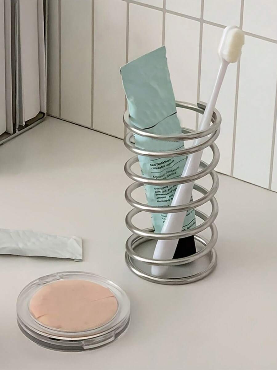 Modern Iron Toothbrush Holder - Round Design, Dust-Proof Makeup Brush And Pen Storage Box, No Electricity Required, Bathroom Accessories, Bathroom Accessories | Minimalistic Bathroom Accessories | Durable Toothbrush Holder, Toothbrush Holder Storage Box