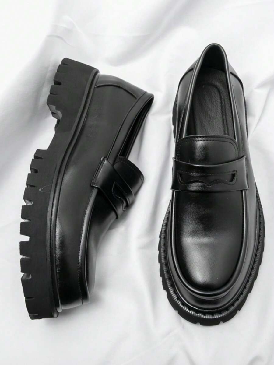 New Men's Formal Slip-On Loafers, Thick Sole Business Casual Shoes, Round Toe High-End British Style Dress Shoes For Men, Increase Height Old Money Chic Autumn
