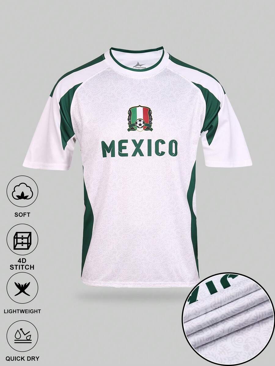 SURUIDA 1pc Men Mexico National Football Soccer Jersey, White Sports T-Shirt Suitable For Sports Team Match