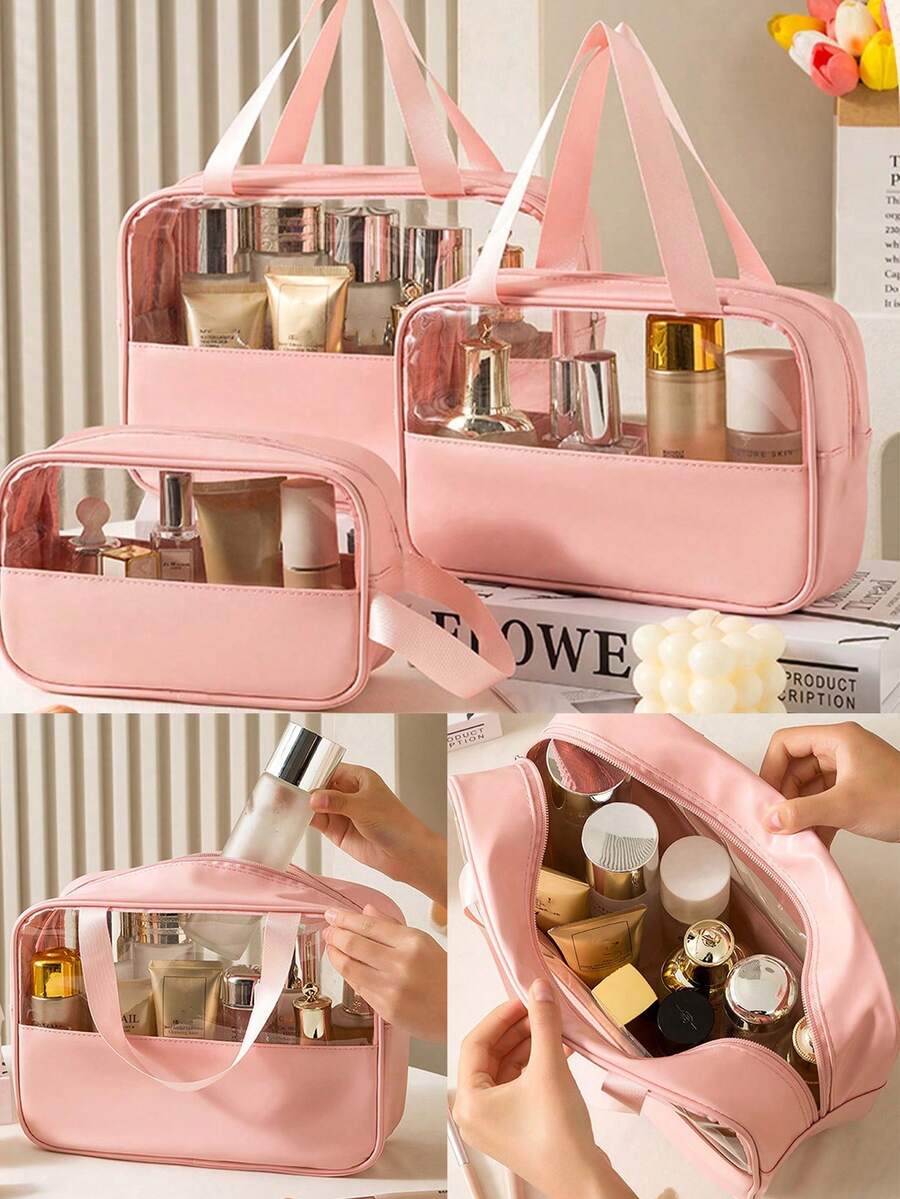 Transparent PVC Toiletry Bag,Large Capacity Makeup Bag, Multi-Functional PVC Toiletry Bag,Waterproof Travel Organizer Bag ,Travel Essential,Holiday Essentials For Winter And Fall For Vacation,For Cosmetics, Skincare, Makeup Brushes, Perfume, Suitable For Beach, School, Bathroom, Holidays, Mother's Day, Christmas, Gift For Mom Wash Bag For Travel For Bathroom For Women