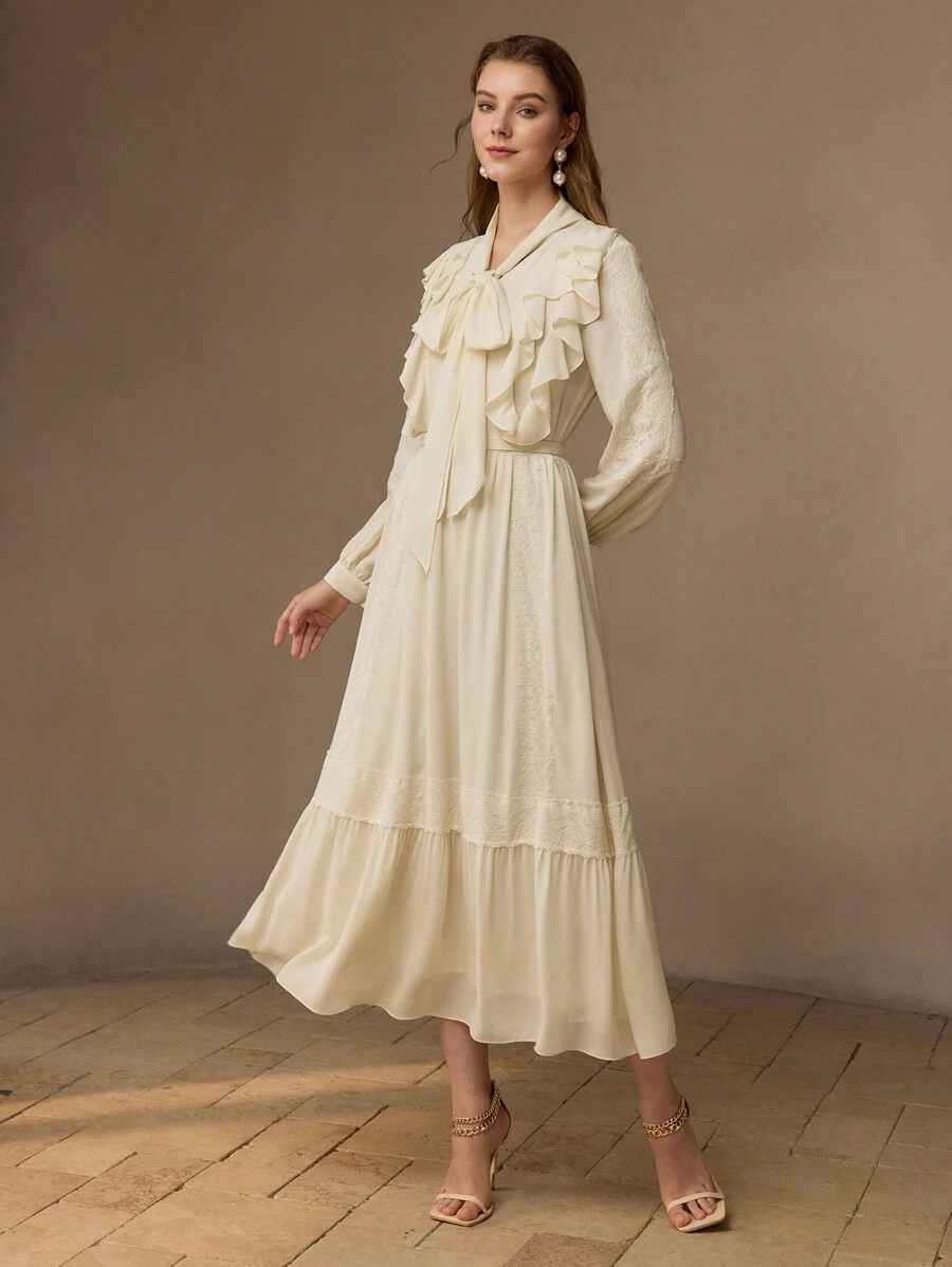 MOTF PREMIUM WOMEN TIE FRONT RUFFLE HEM DRESS