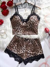 OciliSet Piyama 2 Keping, Kamisol & Seluar Pendek Seksi Wanita, Bercorak Seluruh Badan, Hiasan Hati, Pakaian Tidur Musim Panas Kasual, Pakaian Musim Panas, Baju Piyama Comel, Set 2 Keping, Pakaian Rumah, Kembali Ke Sekolah, Pakaian, Krismas