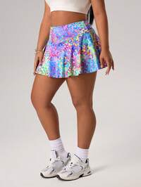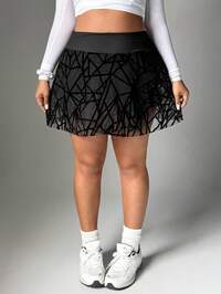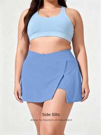 Easithlete1pc Plus Size Women Sports Skirt, High Waist Exercise, Jogging, Fitness, Golf, Tennis Skirt - Casual, Fashionable, With Pockets, 2 In 1, Split, Yoga Skirt, Spring/Summer Black