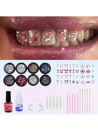 220pcs Self-Adhesive Super-Shiny Tooth Gems Kit With Tools, DIY Tooth Jewelry Set, Easily Removable & Installable Butterfly Tooth Decors, Crystal White Rhinestones, Flat Round Asymmetric Shape, Fashion Shiny Tooth Stickers For Y2K, Club, Party, Halloween, Comes With All Tools And Adhesive, UV Curing Lamp #4 Bestseller