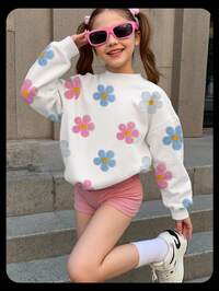 Emery Rose KidsEmery Rose Kids Emery Rose Kids Young Girl Blue Floral Pullover For Autumn And Winter Fall Tops Cute Floral Print, Casual Loose Fit Crew Neck Comfortable Daily Knit Long Sleeve Sweatshirt, Suitable For Autumn/Winter, Streetwear Vintage, Summer For Easy Comfort, Autumn Layers, Stylish, Casual Wear, Graphic, Fall, Back To School, Homecoming, Suitable For Outdoor Picnic, Outing, Street Photography, Home, Campus Village Life Sweatshirt For Floral Sleeve