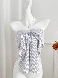 SoleiaSoleia Women's Retro Newspaper Print V-Neck Front Tie Bow Flare Sleeve Asymmetric Ruffle Hem A-Line Top, Suitable For Vacation, Early Autumn, Party, Date, Afternoon Tea, Layering,Graphic Tops,Night Out Going Out Tops,Back To School,Homecoming Vintage Blouse Shabby Chic Top Feminine Top Rose Print Blouse SHEIN MOD 3pcs/Set Vintage Print Cropped Top With Side Tie Waist, Casual Wear,Vintage Top,Tea Party,Going Out,Old Money, Flower Tube Top,Summer Vacation,Holiday,Beach,Carnival Costume,Spring