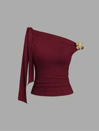 TrelyraSHEIN MOD Women's Fuzzy Off Shoulder Solid Color Flare Sleeve T-Shirt,Halloween,Off The Shoulder Top,Concert Outfits For Women,Boho Women Clothing,Back To School,Fall Clothes For Women,Going Out Tops Women,Fall Outfits,Winter Outfits,Chic Top