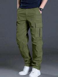 1pc Men's Multi-Pocket Solid Color Slim Fit Cargo Pants, Casual Commuting, Sports Training, Running, Outdoor, Loose Fit, Minimalist Fashion, Fitness, Jogging, Exercise, Straight Leg, Versatile, Street Style , Fall
