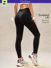 OutZeal Gym Wear Women Sports Black Leggings Workout Pilates Tummy Control High-Waist Butt Lifting With Pocket