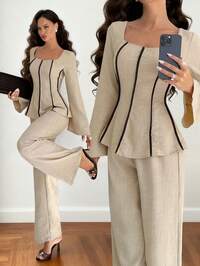 in Collar Women Two-piece Outfits