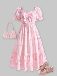 MODELY KidsSHEIN Christmas,Halloween,Black Dress,Black Dress,Winter Clothes,Winterclothes For Kids,Autumn Clothes,Halloween,Halloween Costumes,Christmas Clothes,Elegant Waist Cinched Long Sleeve Teen Girls Dresses Girl Black And White Dress Elegant Long Sleeve Dress Dress With Big Bow Black And White Fall