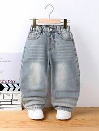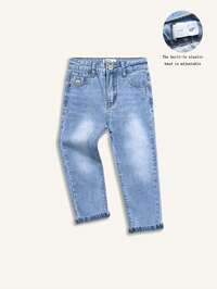 Toddler Boys' Retro Washed Blue Jeans, Non-Stretch Denim Fabric, Classic Waistband With Button Design, Distressed Leg, Suitable For Casual, Streetwear, All Seasons, Daily Wear, School, Outdoor Activities, Family Outings#8 Bestseller
