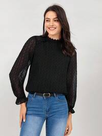Miaspire Miaspire Women's Elegant Shirts, Fall Women Clothes, Polka Dot Tops, Chiffon Jacquard Texture Fabric Black Tops, Winter Outfit For Women, Business Casual Woman, Old Money Style Women, Going Out Outfits, Teacher Outfits For Women, Airport Outfit For Women, Halloween Costumes